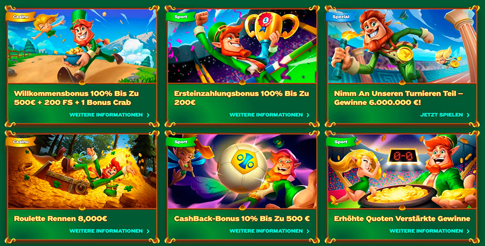 2024 ist mit Greenluck ein bunter Neuzugang in der Online-Spielwelt gelandet: Das koboldgrüne Logo und die aufgeräumte, moderne Oberfläche fallen sofort ins Auge. Hier dreht sich alles um Funktionalität – vom fetten Willkommenspaket über die riesige Auswahl an Spielen bis hin zum nahtlos auf Deutsch optimierten Interface. Erfahren Sie in diesem Rückblick auf das Casino Greenluck über einen echten Volltreffer für alle deutschen Casino-Fans!