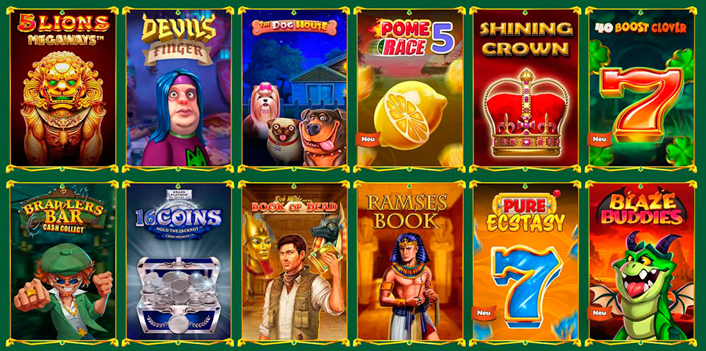 - Greenluck trumpft mit mehr als 11.000 Spielen auf – von knallbunten Slots über traditionelle Tischklassiker bis hin zu mitreißenden Live-Dealer-Tischen ist wirklich alles dabei.